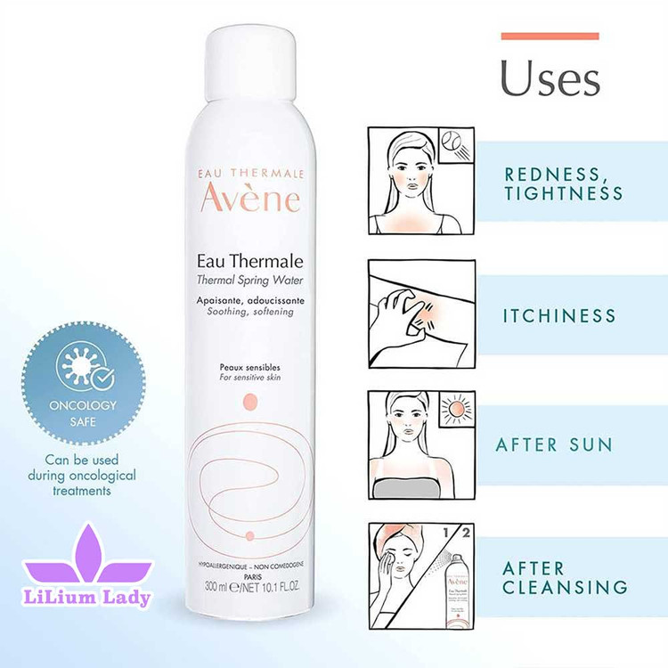 اسپری آبرسان اون قرمزی و خارش را به میزان قابل توجهی کاهش می دهد. با حرکات آهسته به جلو و عقب، آب چشمه حرارتی Avène را با حفظ فاصله 20 سانتی متری، روی ناحیه حساس اسپری کنید. در طول انجام این کار، سر خود را ثابت نگه داشته و چشمانتان را ببندید. سه اسپری متوالی کافیست تا تاثیر تسکین دهندگی آنرا متوجه شوید.