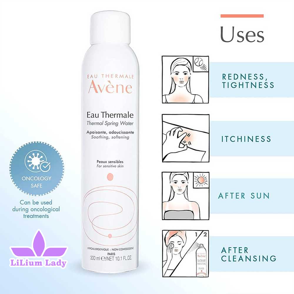 اسپری آبرسان اون قرمزی و خارش را به میزان قابل توجهی کاهش می دهد. با حرکات آهسته به جلو و عقب، آب چشمه حرارتی Avène را با حفظ فاصله 20 سانتی متری، روی ناحیه حساس اسپری کنید. در طول انجام این کار، سر خود را ثابت نگه داشته و چشمانتان را ببندید. سه اسپری متوالی کافیست تا تاثیر تسکین دهندگی آنرا متوجه شوید.